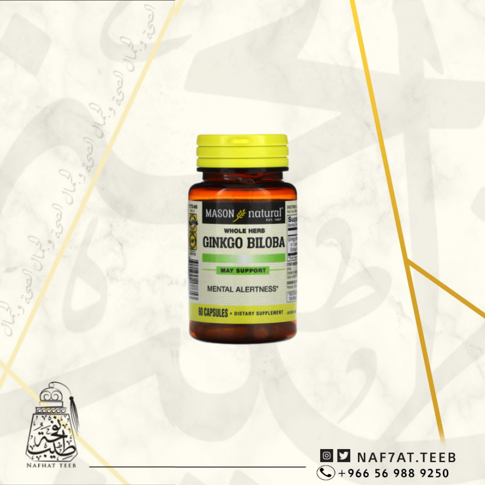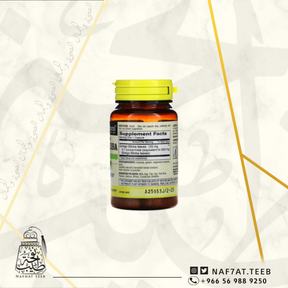 عشبة الجنكة بيلوبا مشقوقة الأوراق كاملة، 60 كبسولة