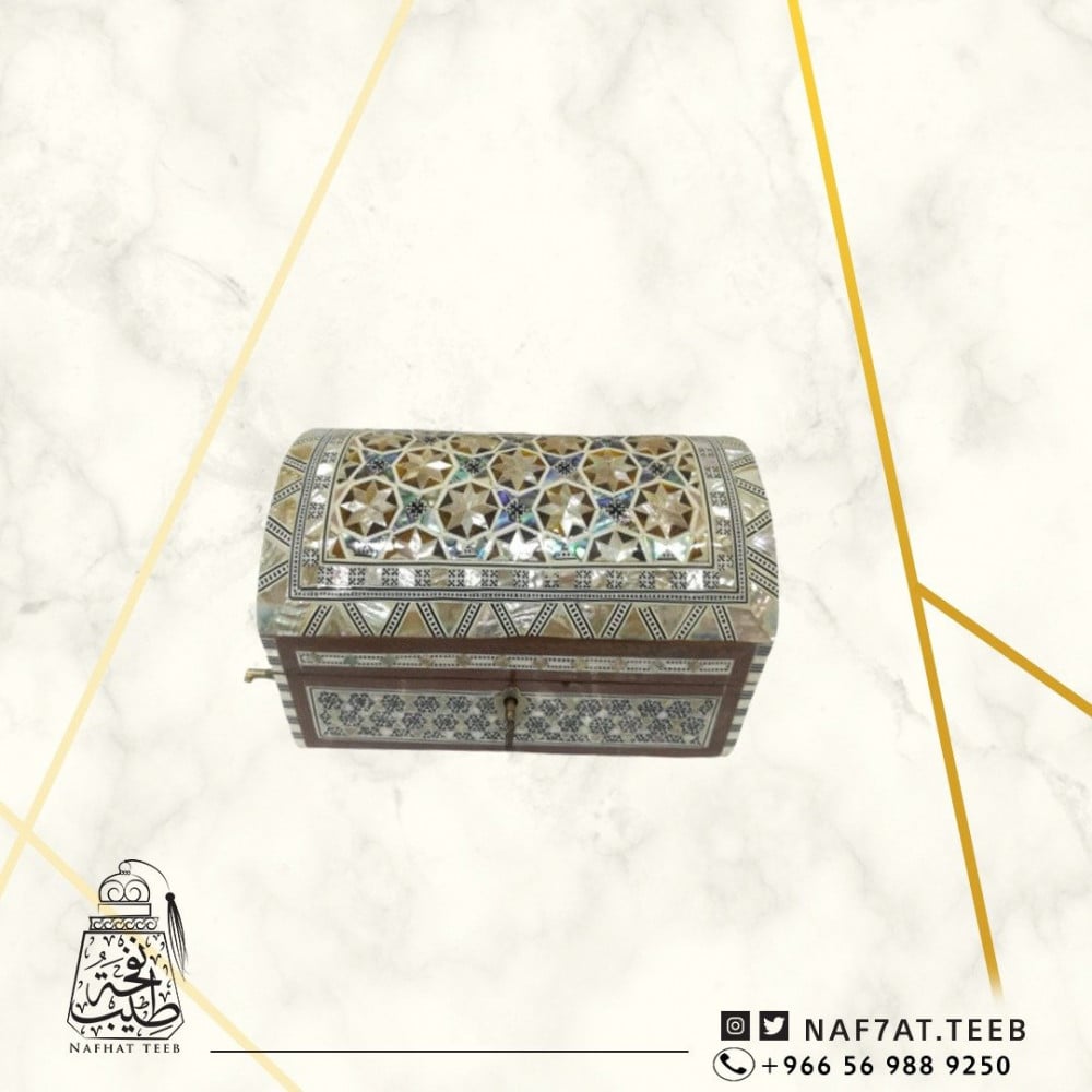 صندوق فاخر مصنوع يدوي من الفسيفساء ومبطن بالمخمل الناعم ( حجم صغير 17×11×9)