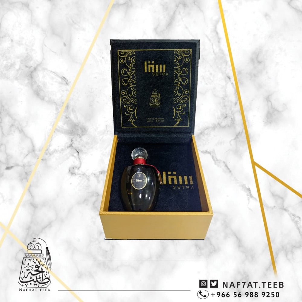 يأتيكم هذا العطر داخل علبة من الجلد الفاخر بتمازج بين اللون الاسود والذهبي ومبطنة بالشمواه.