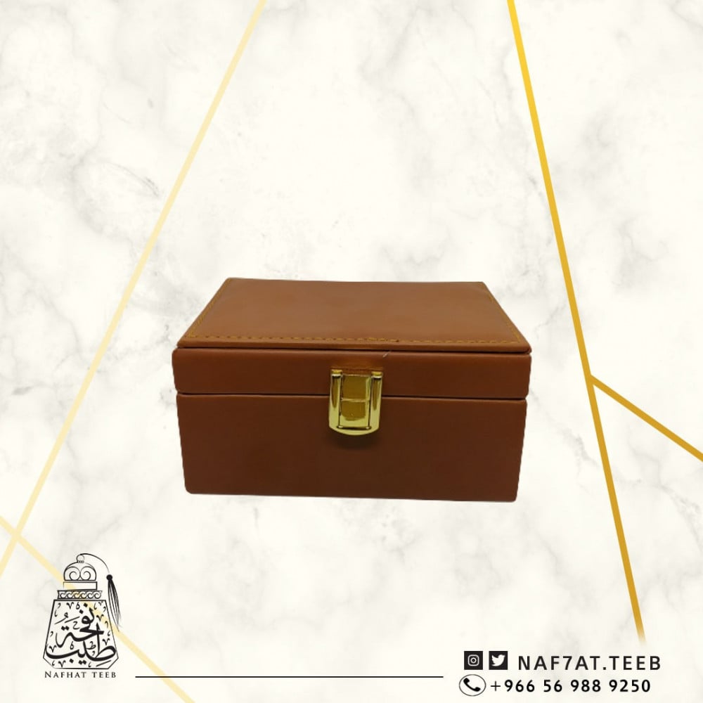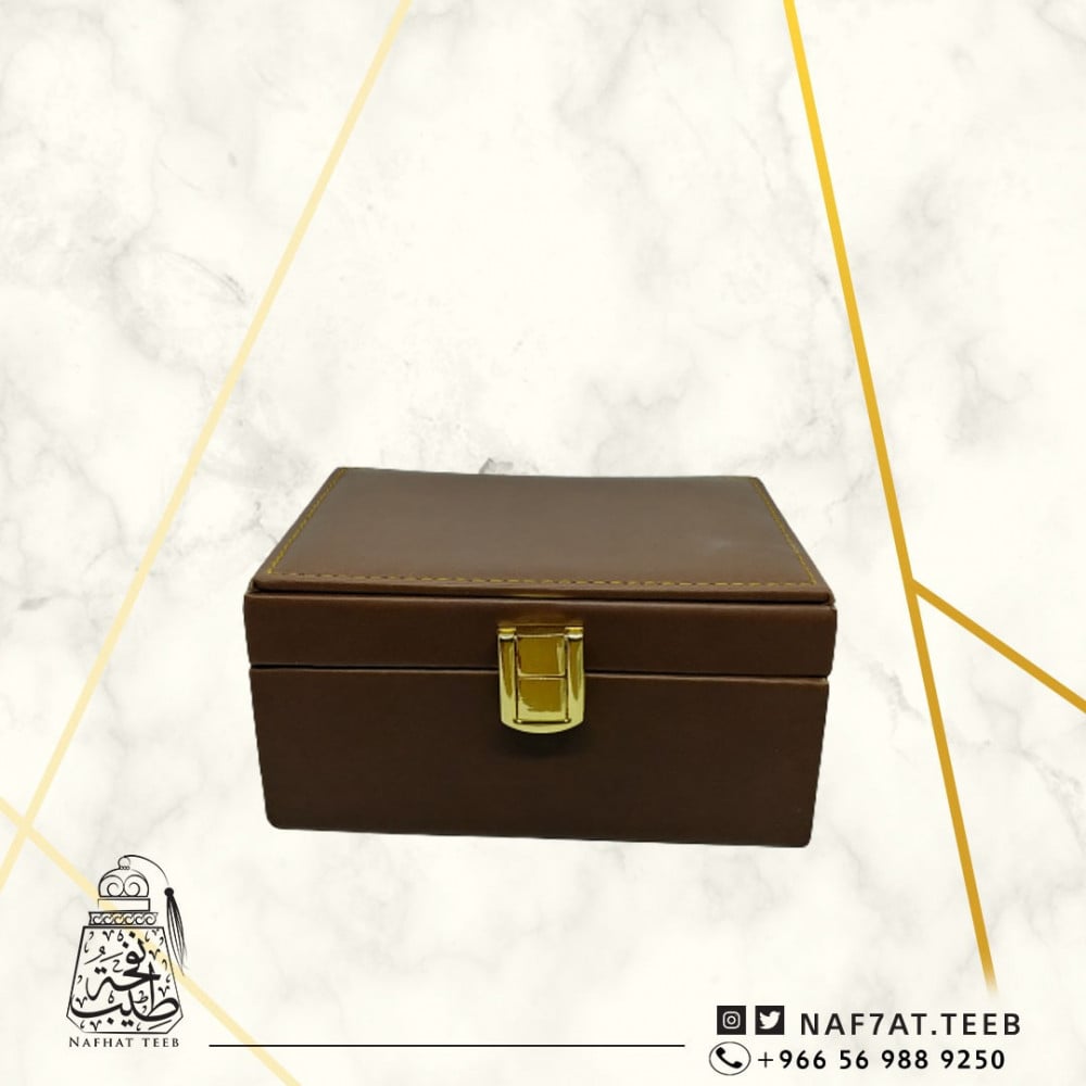 صندوق جلد فاخر مبطن بالشامواه ومغطى بالجلد المطرز.
