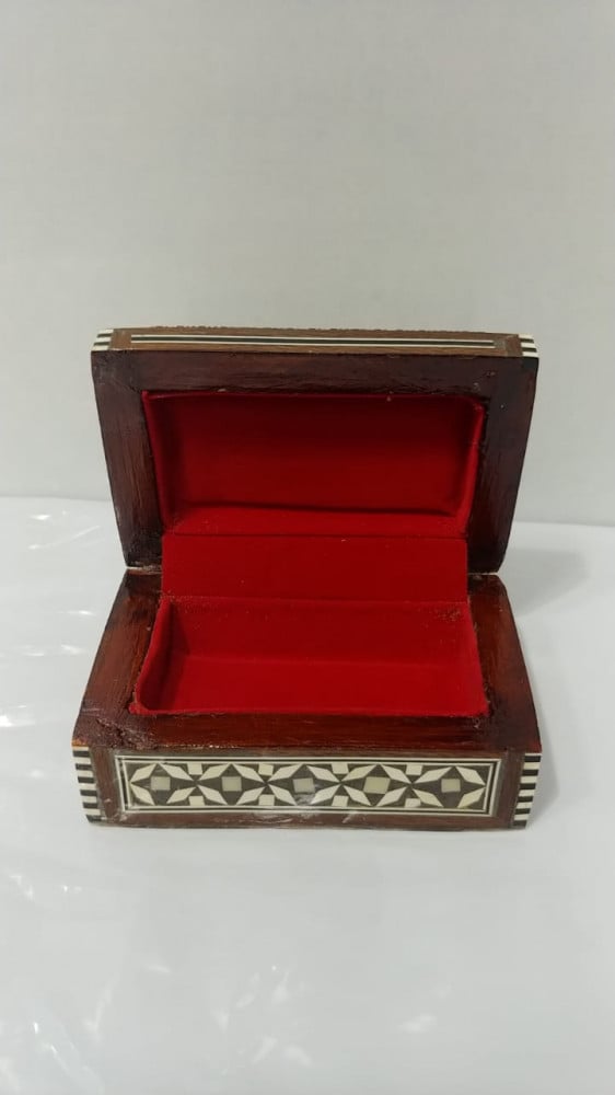 صندوق خشبي مزخرف بالفسيفساء الفاخرة ومبطن بالمخمل الناعم لون أسود(فارغ)
